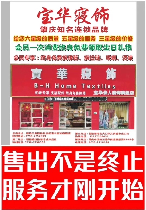 寶華佳人床上用品連鎖店,目前有三個店,主要經(jīng)營床上用品,紋帳,家具等,在肇慶有10多年的歷史了,有自己的品牌。
