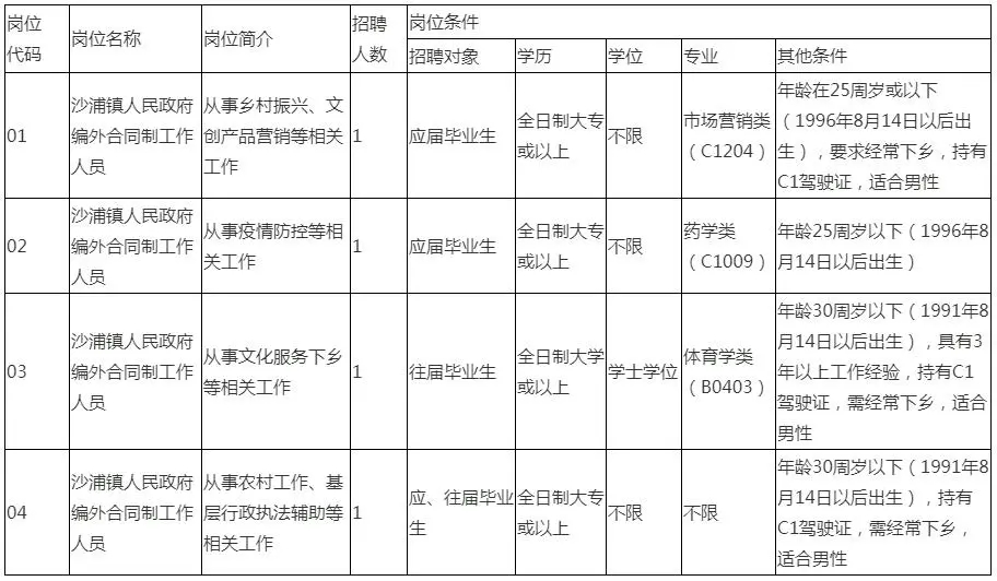 鼎湖區(qū)沙浦鎮(zhèn)人民政府編外合同制工作人員4名。