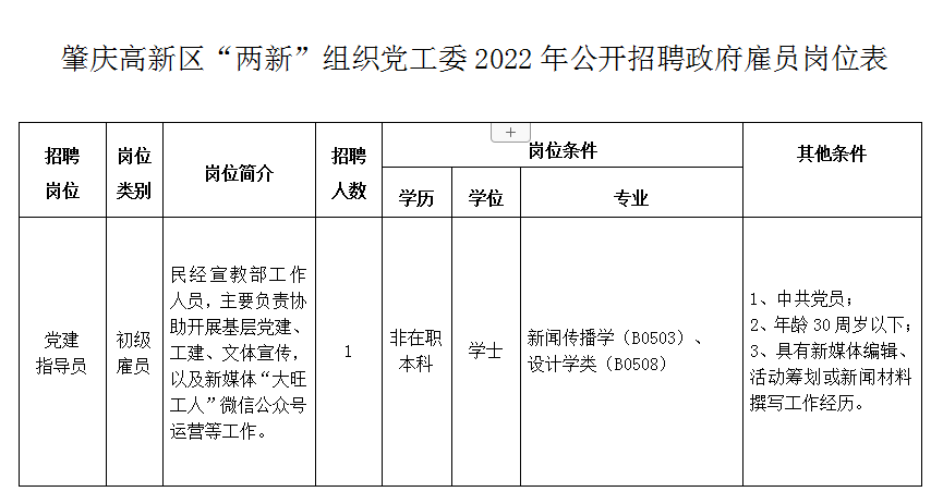 3、報(bào)名方法:采取現(xiàn)場(chǎng)報(bào)名形式進(jìn)行。報(bào)考人員須持《肇慶高新區(qū)“兩新”組織黨工委2022年公開(kāi)招聘政府雇員報(bào)名表》(附件2),并攜帶本人身份證、學(xué)歷學(xué)位證書(shū)、工作經(jīng)歷證明等原件及復(fù)印件,以及本人大一寸同底彩色免冠近照1張(用于貼報(bào)名表)到報(bào)名地點(diǎn)辦理報(bào)名手續(xù)(除《肇慶高新區(qū) “兩新”組織黨工委2022年公開(kāi)招聘政府雇員報(bào)名表》(附件2)外,其他證件、證明要求提供原件和復(fù)印件,驗(yàn)原件收復(fù)印件)。本次招聘考試無(wú)需繳納報(bào)名考務(wù)費(fèi)。聯(lián)系人:梁先生,聯(lián)系電話(huà):0758-3641989/聯(lián)系人:曾先生,聯(lián)系電話(huà):0758-3135356。